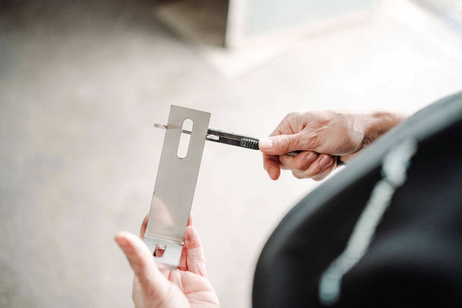 L-Winkel nach Maß anfragenDu brauchst nicht nur individuelle Schenkellängen, Breite oder Stärke, sondern auch Löcher mit Senkungen, Lang- oder Gewindelöcher in einzigartigen Positionen? Schicke uns auch eine Planzeichnung, damit wir alles berücksichtigen können.